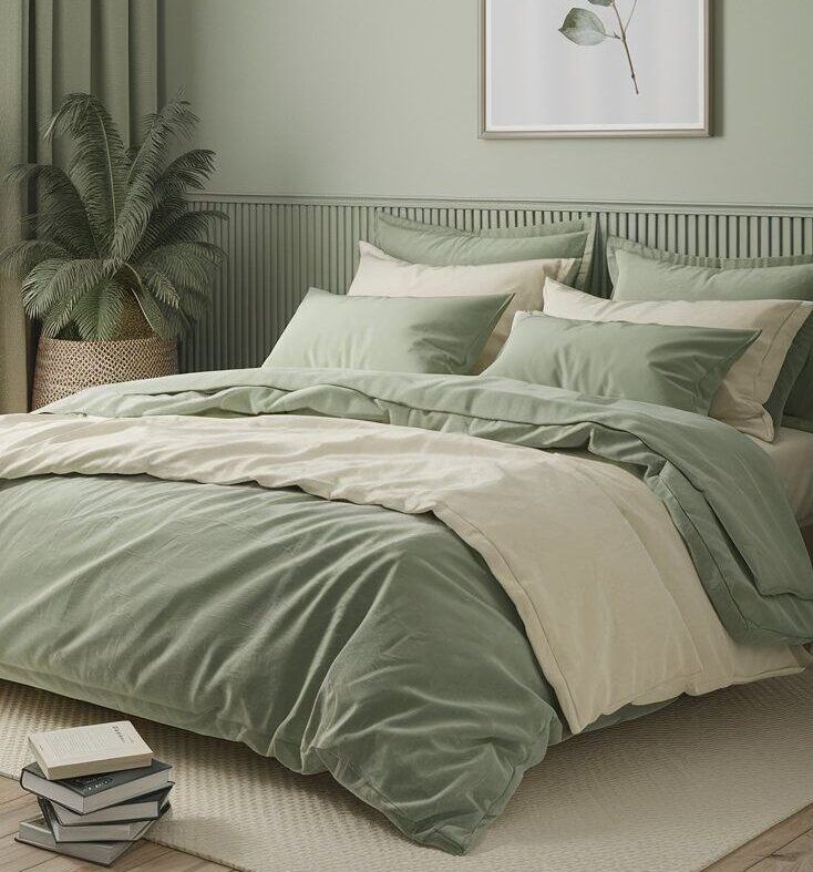 2. Gợi ý màu ga giường lý tưởng cho tường màu xanh lá nhạt