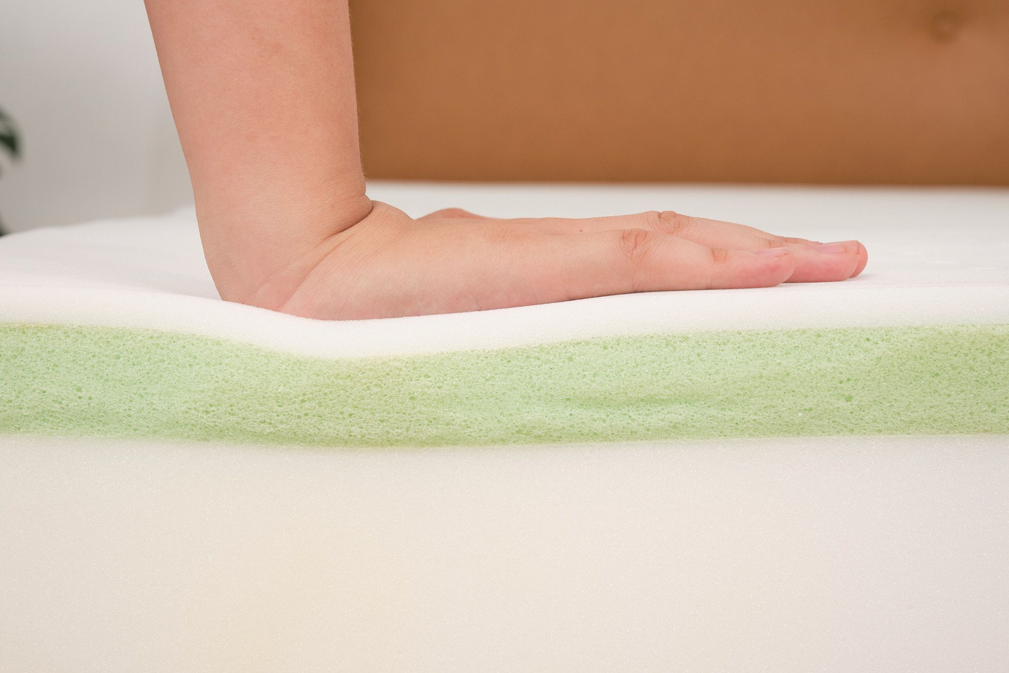 2 tầng foam giúp vững chắc bên trong, mềm mượt bên ngoài. Lớp trên mềm mại vừa đủ để nâng niu vùng tiếp xúc, tạo trải nghiệm nằm ngủ êm ái và nhẹ nhàng. Lớp foam bên dưới chắc chắn hơn, có chức năng nâng đỡ toàn thân, giúp giữ đúng đường cong sinh lý của cột sống.